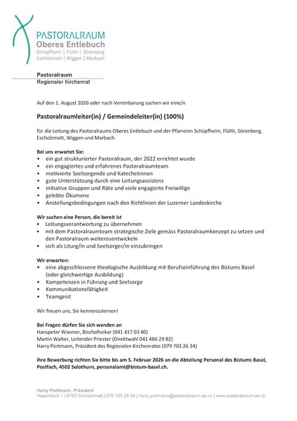 Pastoralraumleiter/in - Gemeindeleiter/in (100%)